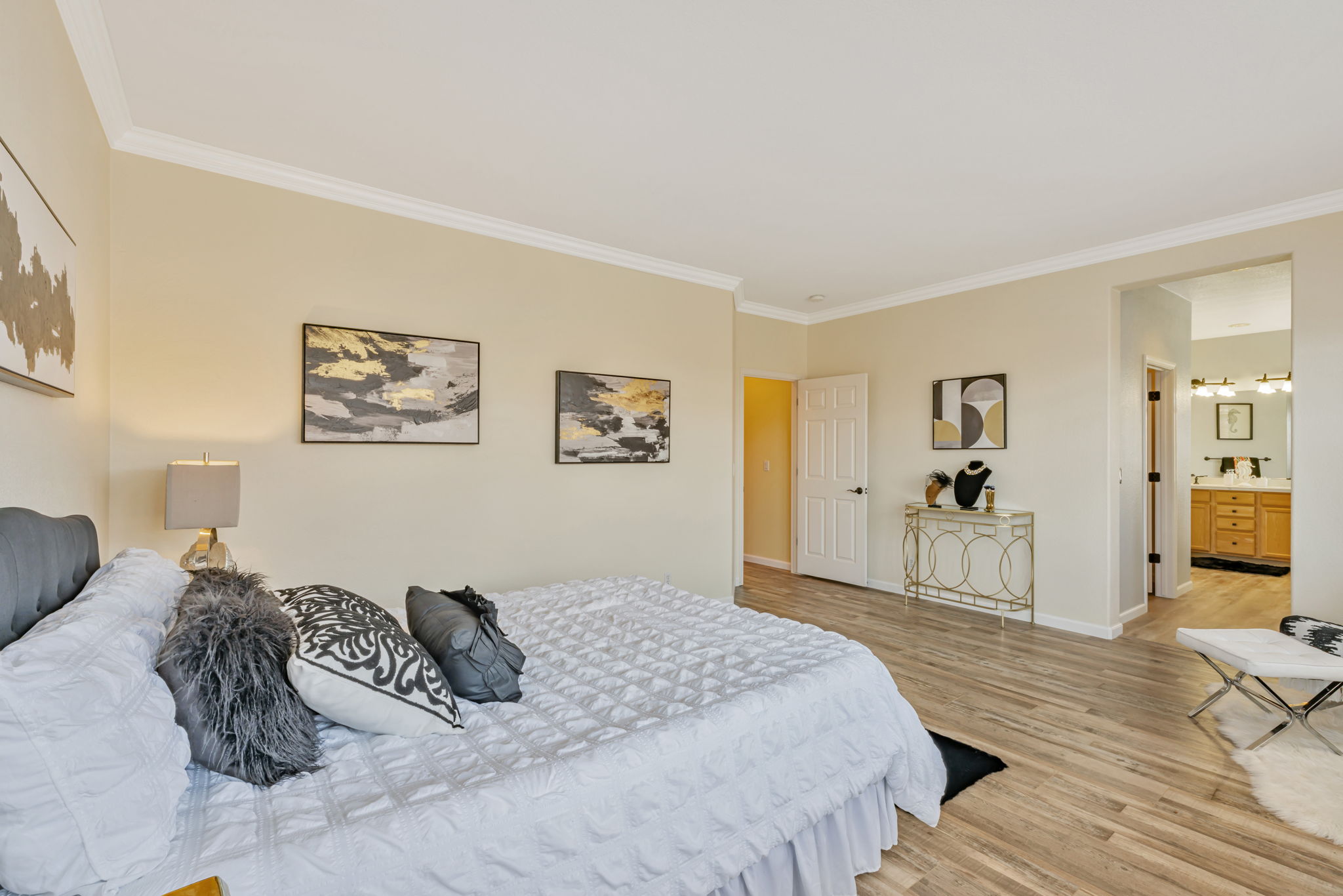 Welcome to your dream home in the highly desirable Eden Shores community! This beautifully maintained residence offers the perfect blend of comfort, style, and location. A fully detached, 4 bedroom, 2.5 bathroom home. 4 total bedrooms upstairs (primary bedroom has ensuite bathroom with walk-in closets, stall shower, separate tub), 2 bathrooms including a convenient powder room for guests downstairs, spacious living and dining room, family room with gas fireplace, waterproof wood laminate floors & tile floors + a warm inviting low maintenance backyard. Huge kitchen with granite countertops, stainless steel appliances (2024) + island. The yard has a sprinkler system, artificial turf and walk-in storage. 2 car garage with plenty of storage, an area to work on projects. Central heating, dual pane windows and shutters. Community has parks, large pool, clubhouse, tennis & basketball courts. Easy access to I-880 & 92, San Mateo Bridge, shopping and dining. This home has everything you need to grow, gather, and create lasting memories.